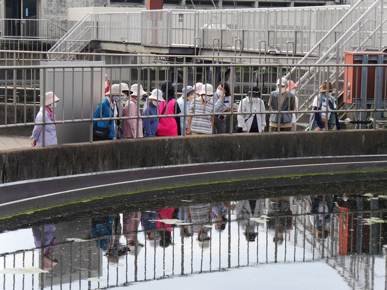 ミーティングの後、浄化センターへ。3班に分かれてセンター内の見学です。概略の説明を受けるとともに実際に処理施設を見学。日頃私たちが気にしたこともなかった生活排水(下水)を浄化される仕組みを目の当たりにして、生活者としての責任と配慮を改めて実感することができました。