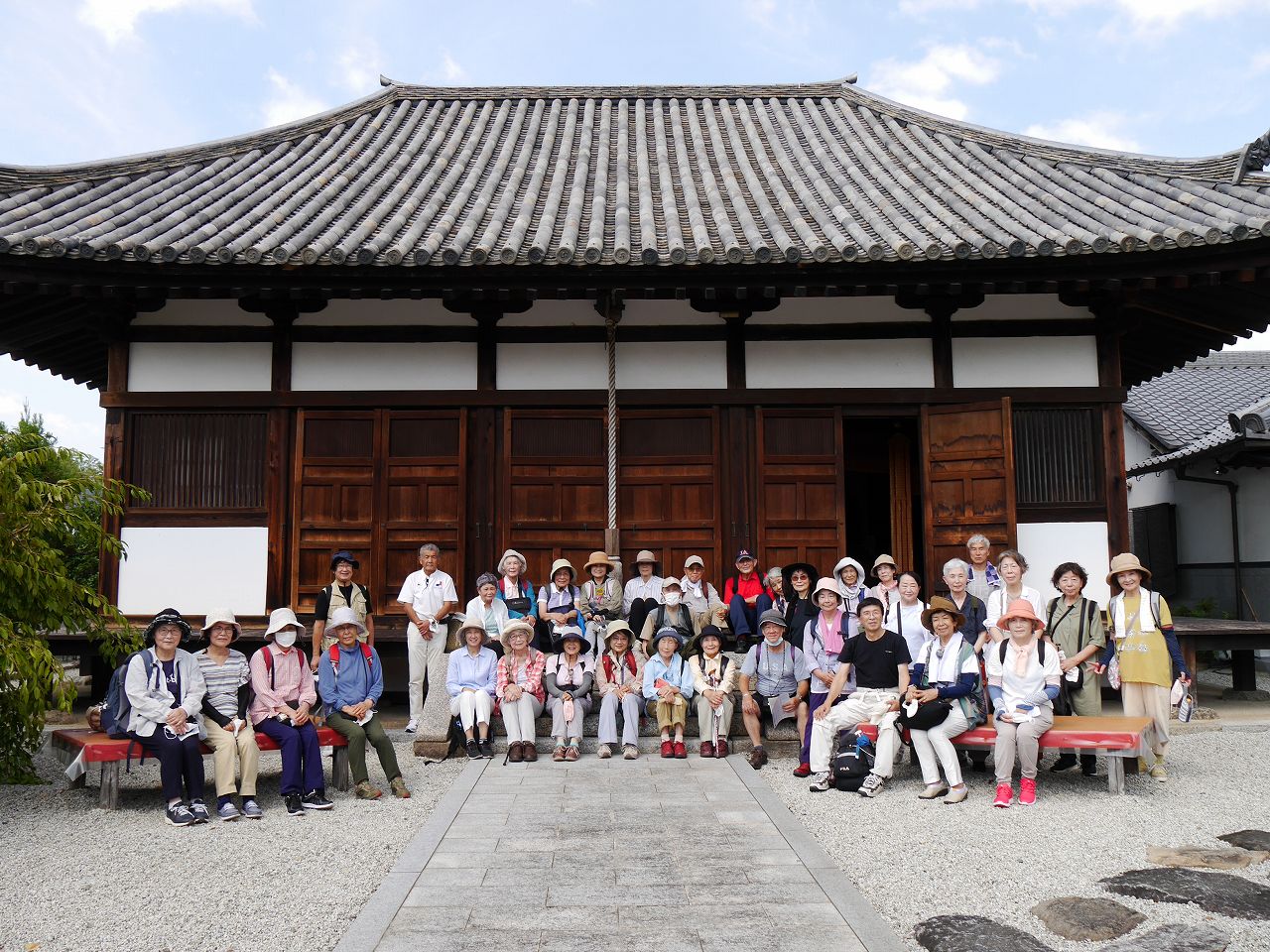 ハードコースのメンバーは佐保川を渡り推古天皇・聖徳太子ゆかりの額安寺を拝観。ご住職の軽やかな説明にみなさん熱心に耳を傾けられていました。その後は推古神社や鎌倉時代に活躍された忍性上人の五輪塔などを見学して平端駅で解散。生活排水という現実を考えるとともに古代の史跡に思いを馳せる楽しい歩こう会も無事終了しました。