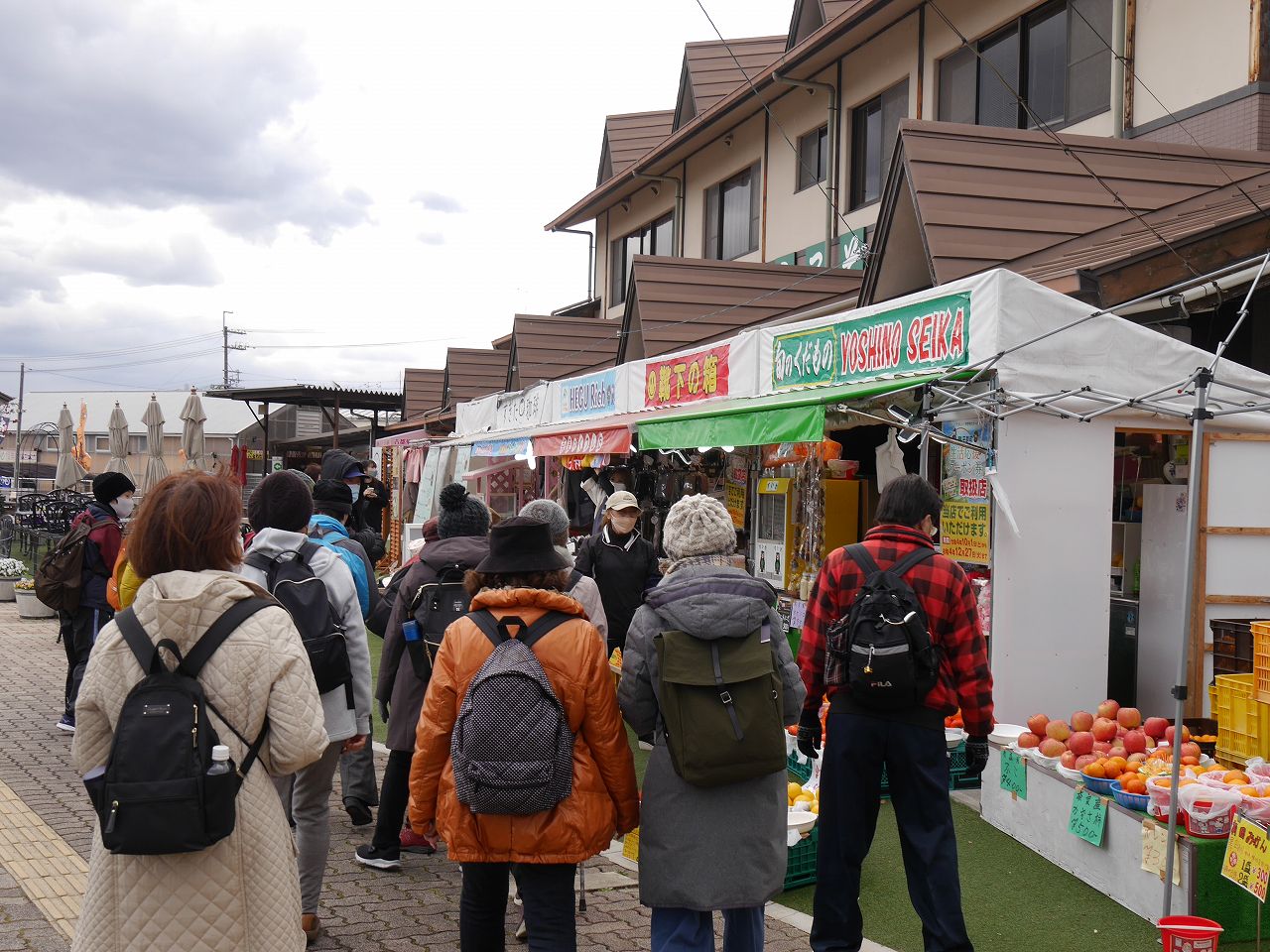 昼食後は道の駅へ。季節の野菜や果物、さらに切り花などに疲れも忘れたように活き活きとお買い物されているみなさんがとても印象的でした。