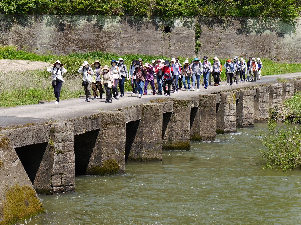 木津川にかかる潜没橋を渡ります。
