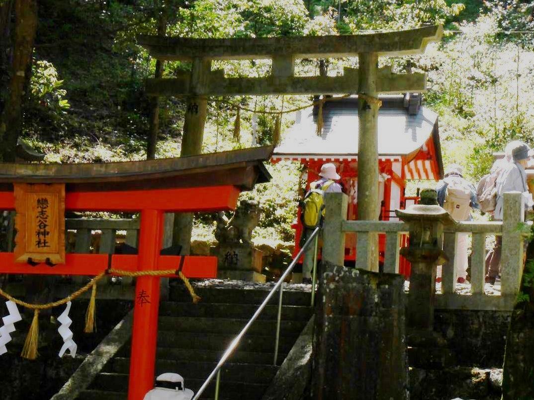 大河原駅を出発し木津川にかかる潜没橋を渡るとそこはもう恋志谷神社。後醍醐天皇を慕う寵妃の悲しい最後を悲しんで建立されたという恋志谷神社は静かに私たちを迎えてくれました。