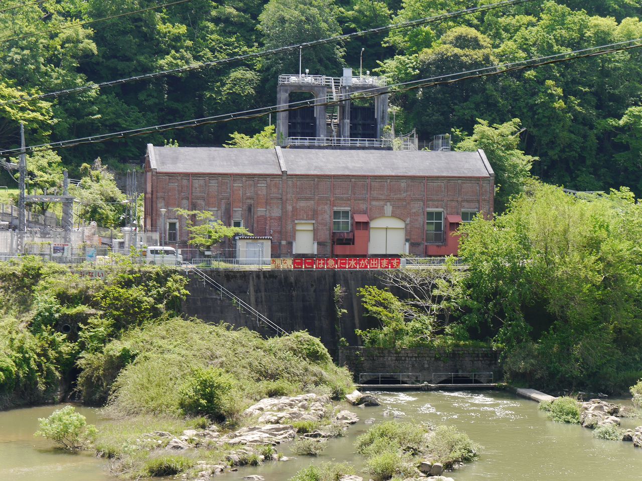 赤レンガが美しい大河原発電所。