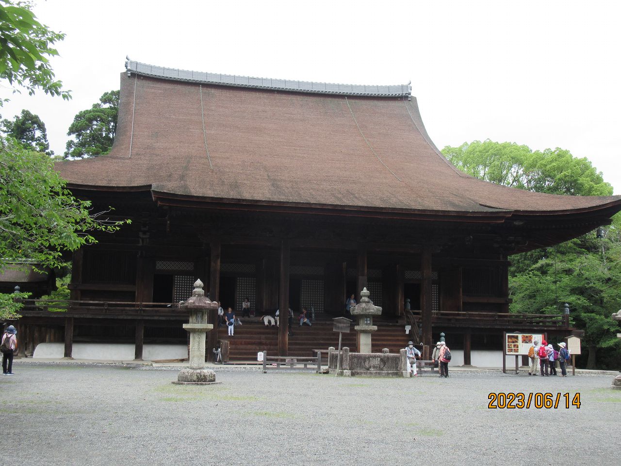 金堂前で記念撮影。