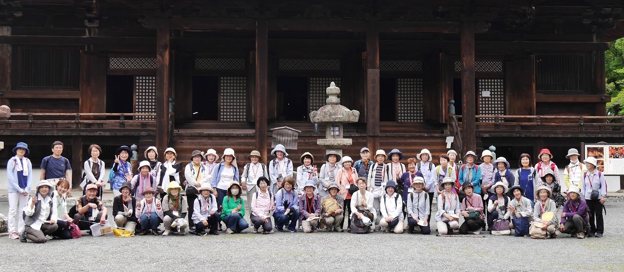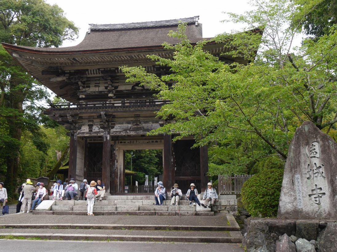 続いて三井寺(正式には園城寺)へ。天智・天武・持統天皇の産湯に用いられたという泉が湧き出る閼伽井屋や弁慶の引き摺り鐘、毛利輝元が寄進したという一切経堂などを拝観。孔雀園では羽を広げた孔雀に会えたラッキーな方も。そして金堂前で記念撮影と自由行動を終えて三井寺に別れを告げました。
