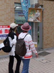 商店街には大津絵のモニュメントがたくさんありました。
