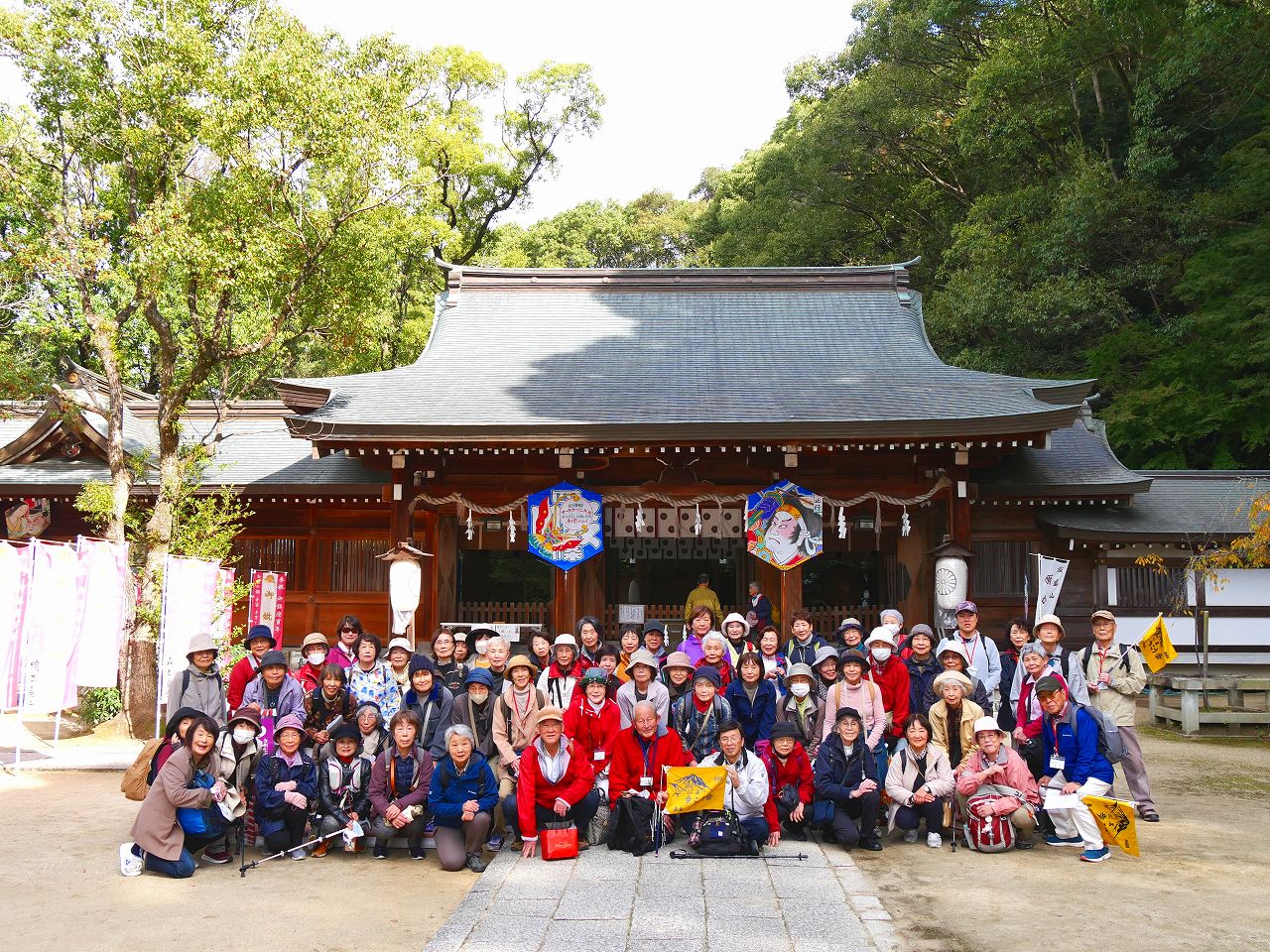 今年初めての歩こう会は「狭岡神社初詣」とリガーレ春日野での「新年会」。78名が参加して初春の佐保路を巡りました。