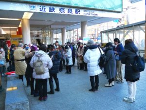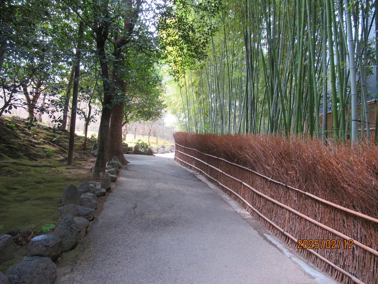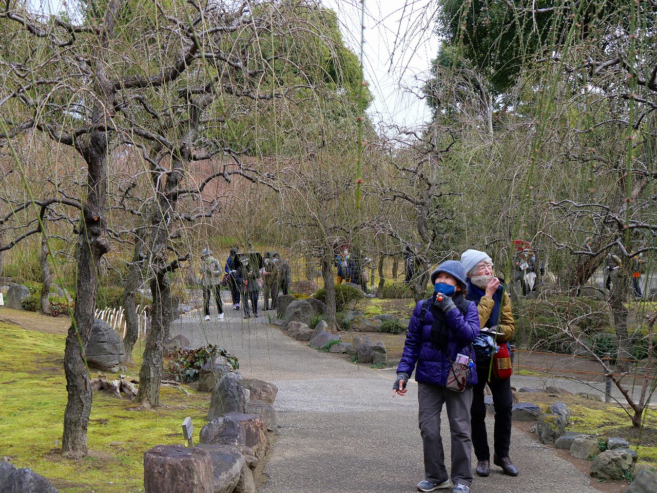 昼食後は城南宮の神苑を見学。今年は梅の開花が遅れていることもありつぼみ固し、また椿も開花は数輪のみという状況にみなさん非常に残念そうでした。