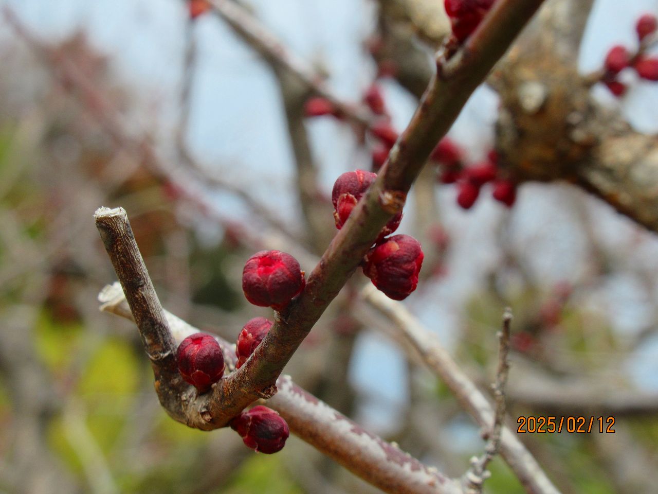 城南宮紅梅の大きな蕾。 大貫さん撮影。