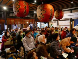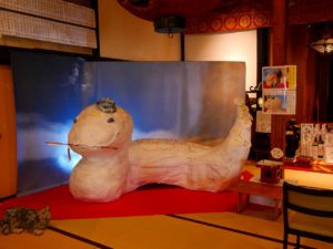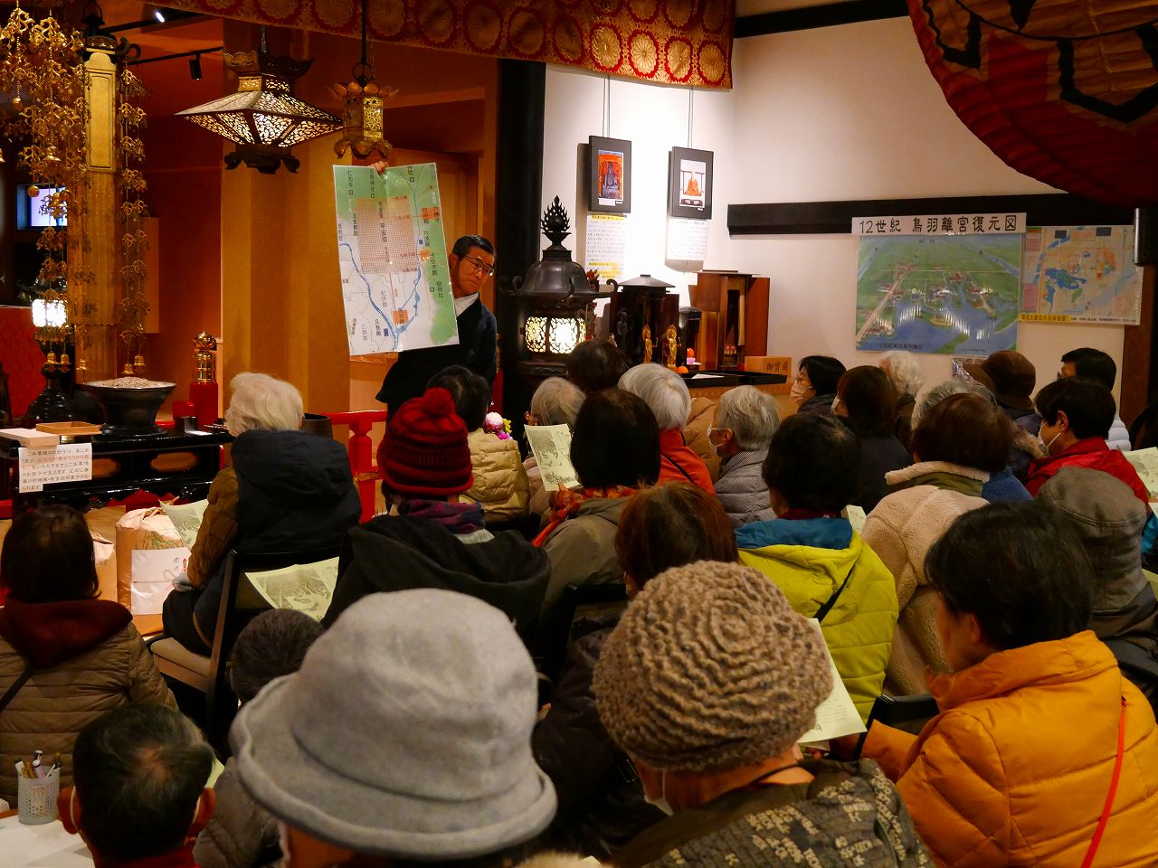 ご住職の鳥羽離宮の成り立ちや平安京との位置関係、不動院の由緒などのお話とともに、ご住職の奥様が新聞紙で作られたという本堂に置かれている鳳凰や龍、干支の蛇の作品がとても印象的でした。