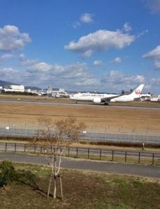 続いてハードコースの千里川土手へ。ここは着陸する飛行機が頭のすぐ上を飛んでいくという全国的に有名な絶景スポット。たくさんの人がカメラやスマホを手に飛行機を待ち構えていました。もちろん私たちも撮影に没頭。それぞれいい写真が撮れたみたいです!