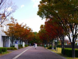 伊丹スカイパーク入口のケヤキ並木。