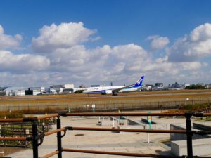 早速飛行機の離陸ラッシュが私たちを迎えてくれました。バス乗り場や時刻表、集合写真の撮影場所、トイレなどを確認して昼食。