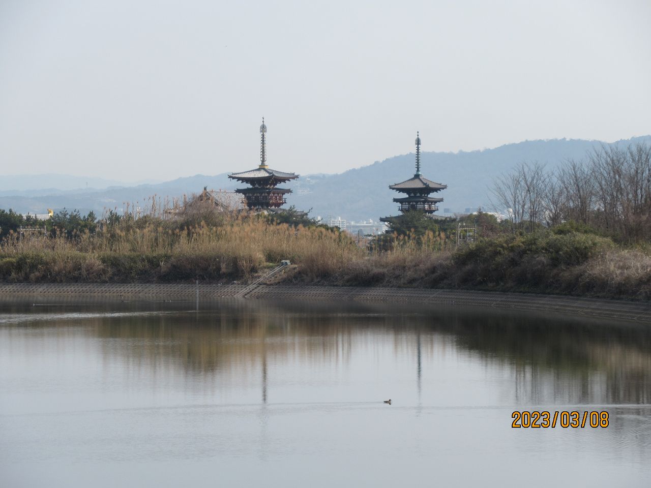 87 2023年3月 「大池越しの薬師寺東塔と西塔」 大貫 誠